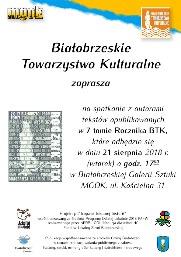 Spotkanie stanowiło kolejny etap naszego, wspólnego, a co chyba najcenniejsze „żywego poznawania historii naszej małej ojczyzny” w ramach realizowanego projektu pt. „Tropami lokalnej historii”, a wydanie tego Rocznika było możliwe dzięki dofinansowaniu ze środków Programu Działaj Lokalnie 2018. Polsko – Amerykańskiej Fundacji Wolności realizowanego przez Akademię Rozwoju Filantropii w Polsce i Ośrodek Działaj Lokalnie „Koalicja dla Młodych” Fundusz Lokalny Ziemi Białobrzeskiej oraz ze środków Gminy Białobrzegi, w ramach realizacji zadania publicznego z zakresu: Kultury, sztuki, ochrony dóbr kultury i dziedzictwa narodowego..
